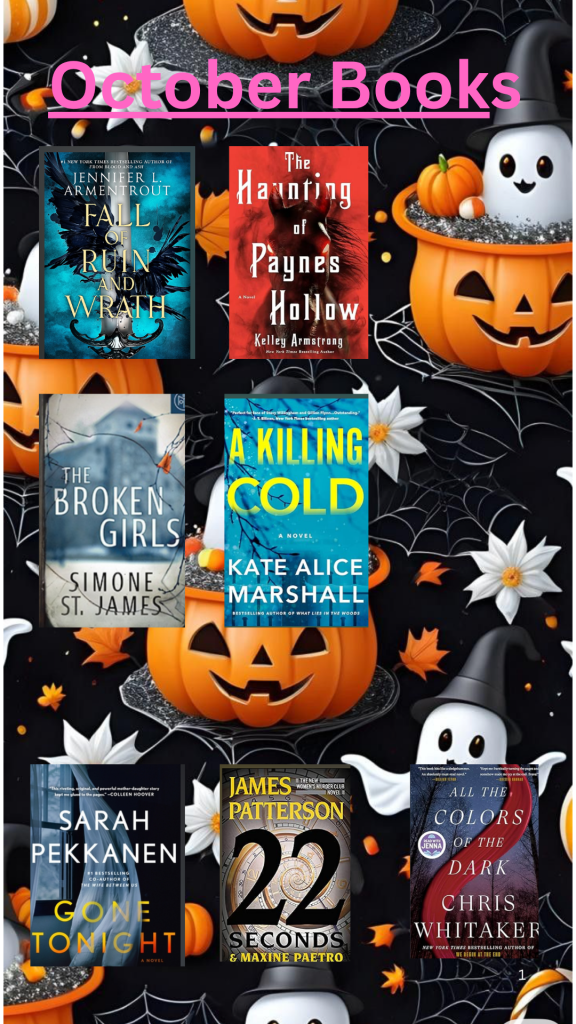 My favorite book this month was either The Broken Girls or The Haunting of Paynes Hollow. I still really enjoyed the other books except for Gone Tonight and All The Colors of the Dark I had to DNF (Did Not Finish). I really did not like the writing style for either of those books and for completely different reasons. Happy Halloween 🎃 👻 ☠️